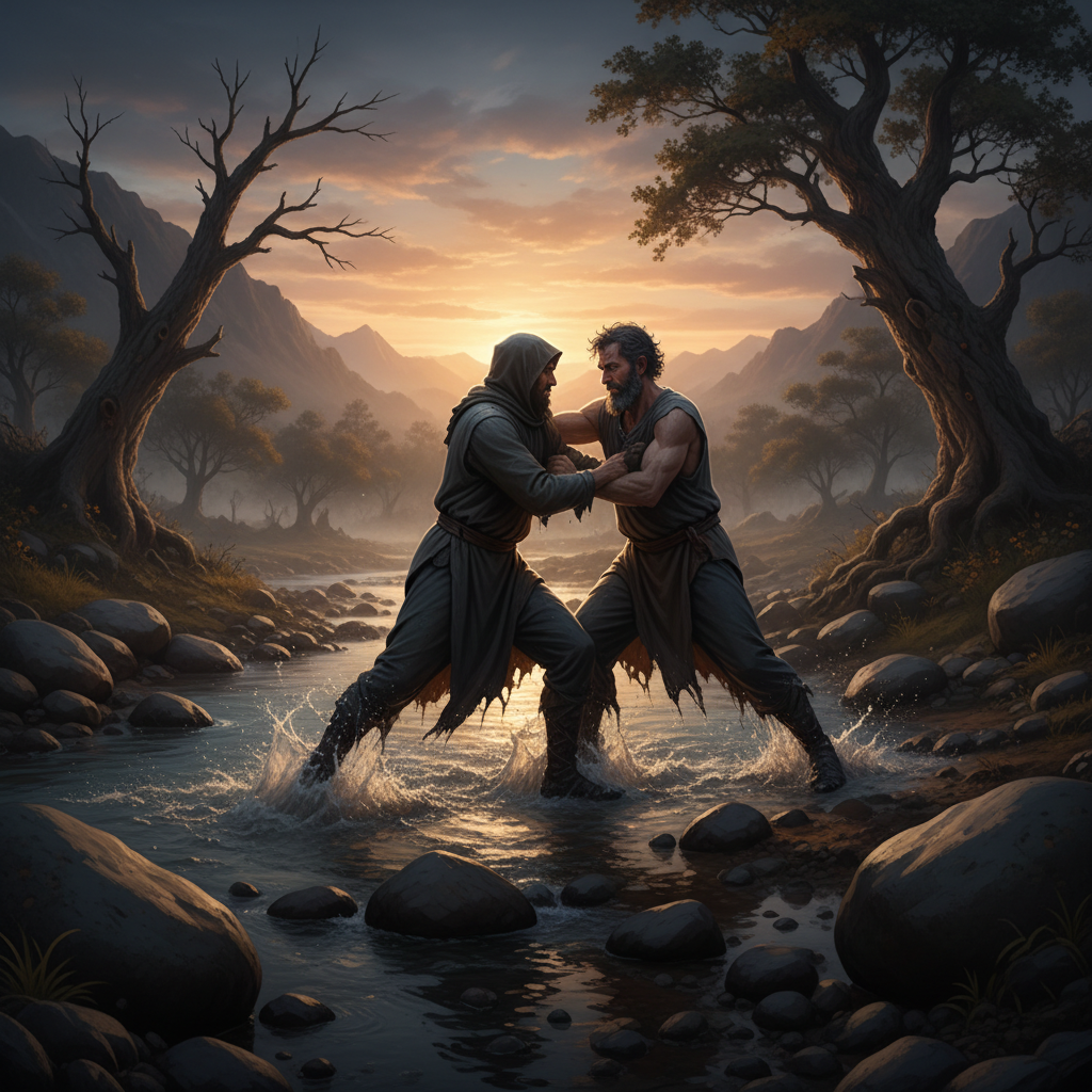 세상의 문제를 내 힘으로 해결하려 사람들과 씨름(아바크)하던 삶을 멈추십시오. 오늘 하루는 내 환도뼈가 부러지는 한이 있어도 하나님의 은혜만을 구하며 주님과 씨름하십시오. 그때 비로소 '야곱(속이는 자)'이 '이스라엘(하나님이 다스리시는 자)'로 변화되는 기적이 일어납니다.