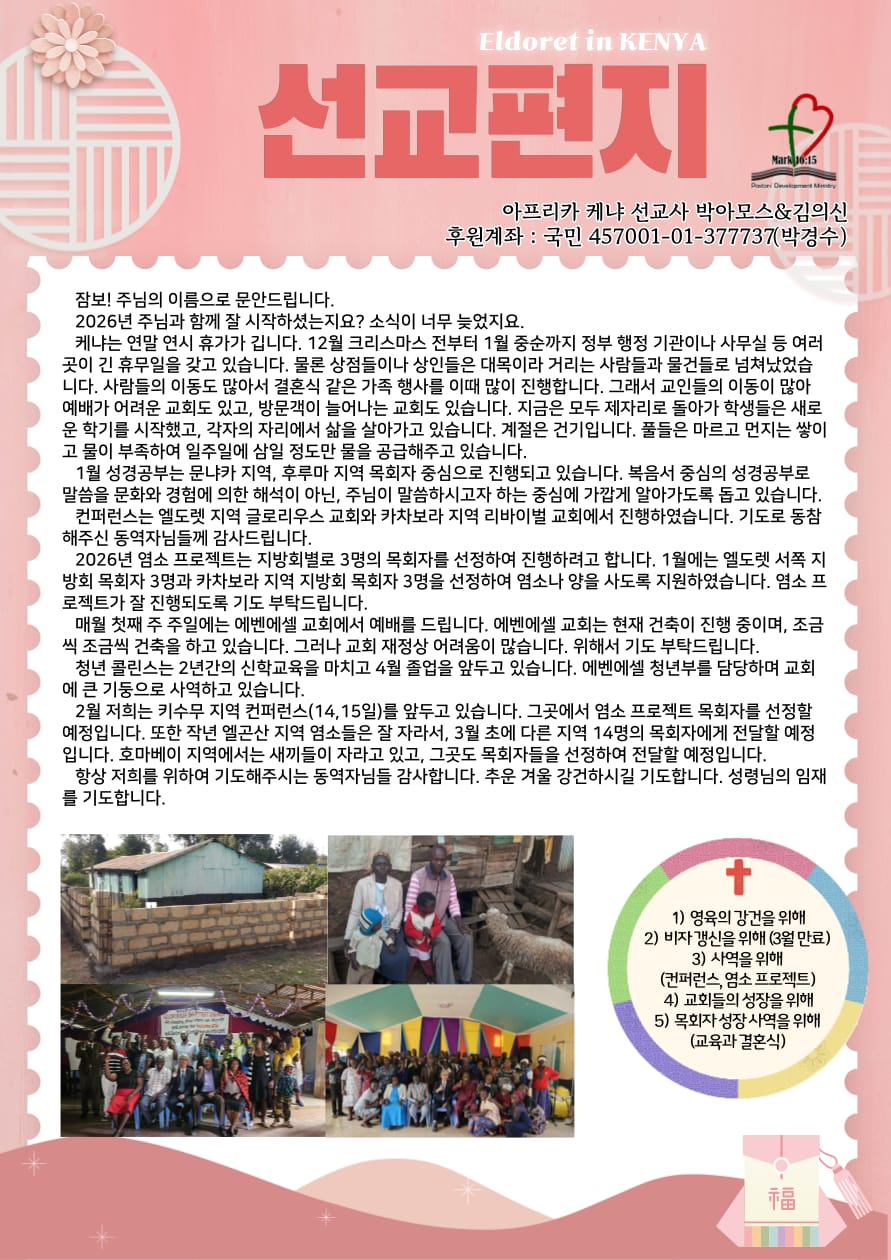 아프리카 케냐 박아모스&김의신 선교사의 선교 편지