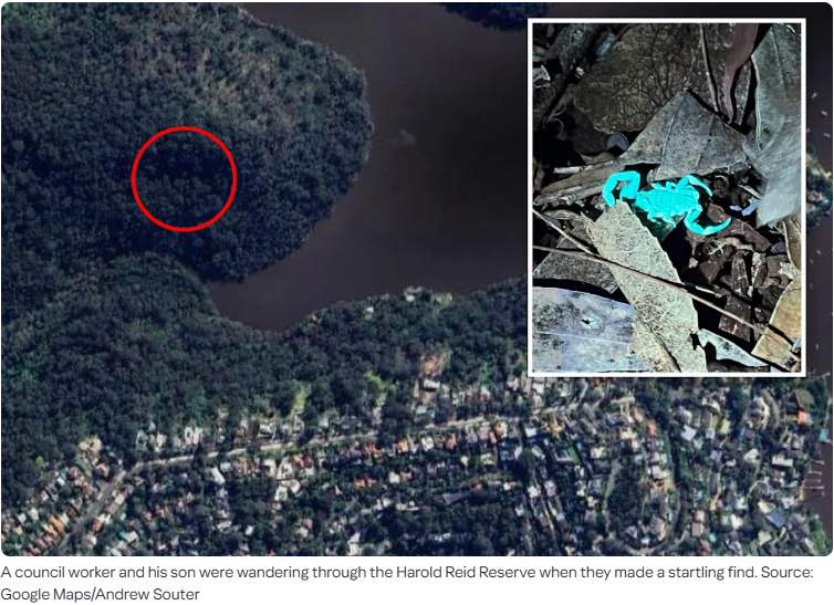 [시드니=OCJ 뉴스] 시드니 윌로비 시의회(Willoughby City Council)의 한 직원이 휴무일을 맞아 아들과 함께 야간 산책을 하던 중, 자외선 아래에서 신비로운 푸른 빛을 내뿜는 전갈을 발견해 화제가 되고 있다.