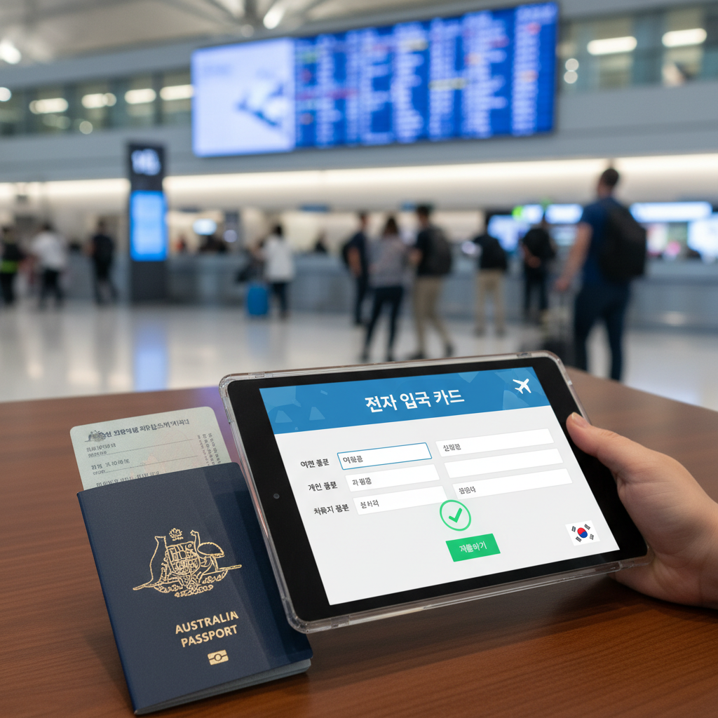 그러나 2026년 1월 1일부터 기존의 종이 입국 신고서를 대체하는 디지털 시스템인 '전자 입국 카드(e-Arrival Card)'가 전면 시행되었다. K-ETA 면제 대상자인 호주 여행객이라 할지라도, 한국행 항공기 탑승 전 반드시 온라인을 통해 이 카드를 제출해야 한다.