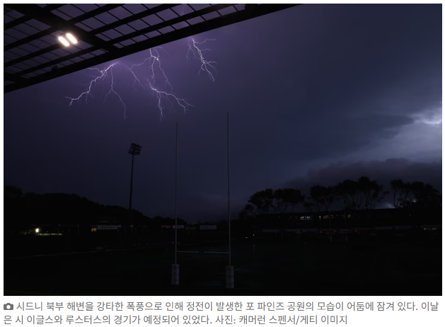 목요일 밤 들이닥친 폭풍으로 NSW주 수만 가구가 정전을 겪었고, 시드니 북부 열차와 지하철 운행이 취소돼 출퇴근 대란이 빚어졌습니다. 주 응급구조대(SES)엔 400건의 피해가 접수됐으며, 중서부에선 크레인 붕괴 사고도 발생했습니다. NRL 등 다수의 스포츠 경기 역시 비로 취소되거나 차질을 빚었습니다.