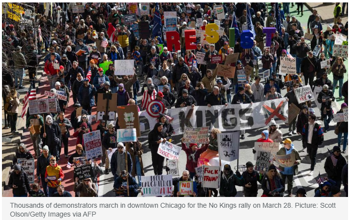 수많은 인파가 도널드 트럼프 대통령의 권위주의적 국정 운영, 강경한 이민 정책, 그리고 이란과의 무력 충돌에 강력히 항의하며 전국 각지에서 집회를 열었습니다. 이번 시위는 2025년 1월 트럼프 대통령의 두 번째 임기 시작 이후, 그에 대한 가장 강력한 조직적 반대 운동인 풀뿌리 시민 단체 '노 킹스(No Kings·왕은 없다)'가 주도했습니다. 미국인들이 이 단체와 함께 대규모 거리 시위에 나선 것은 최근 1년 사이 벌써 세 번째입니다.
