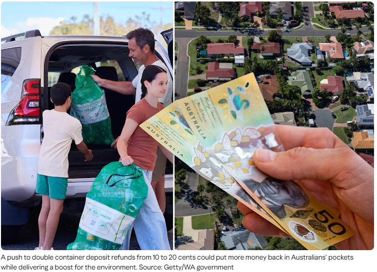 최근 호주 전역에서 빈 병 및 캔 재활용 환급금(Container Deposit Scheme)을 기존 10센트에서 20센트로 두 배 인상하자는 새로운 재활용 정책이 추진되고 있습니다. 환경 단체, 지역 사회 조직 및 재활용 업계 리더들이 연합하여 출범시킨 '20 Cents Makes Sense(20센트가 합리적이다)' 캠페인은 환경 보호는 물론, 인플레이션으로 고통받는 호주 국민들의 주머니에 더 많은 현금을 돌려줄 수 있는 실질적인 방안으로 주목받고 있습니다.